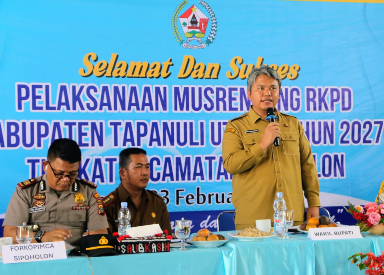Pimpin Musyawarah Rencana Pembangunan (Musrembang) Kecamatan Sipoholon Tahun 2027, Wakil Bupati Tapanuli Utara Dr. Deni P. Lumbantoruan, M. Eng menjelaskan bahwa Pembangunan Pemerintah Kabupaten Tapanuli Utara kedepannya fokus pada 3 hal yaitu: peningkatan kualitas sumber daya manusia (SDM) unggul, Peningkatan Produktifitas Pertanian, serta Pemberdayaan Pariwisata (Salib Kasih, Huta Ginjang, Pulau Sibandang).