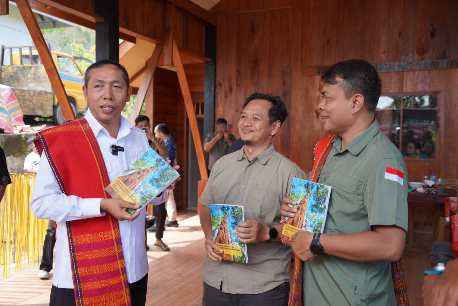 Indonesiainews.com||Taput - Bupati Tapanuli Utara Dr. Jonius Taripar Parsaoran Hutabarat, S. Si., M. Si didampingi Ketua MHA (Masyarakat Hukum Adat) Simardangiang Tampan Sitompul, Direktur Green Justice Indonesia (GJI), Panut Hadisiswoyo bersama tokoh adat, tokoh agama dan sejumlah pemangku kepentingan meresmikan Pusat Adat dan Sentra Kerajinan MHA Simardangiang, peluncuran Buku Kemenyan di Tapanuli, serta syukuran atas terlewatinya bencana alam yang digelar di Desa Simardangiang, Kecamatan Pahae Julu, Kamis (12/2/2026).