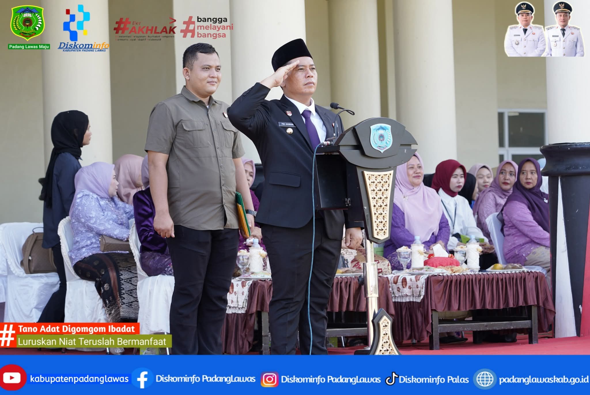 Bupati Padang Lawas Putra Mahkota Alam Hasibuan SE Sebagai Inspektur upacara pada hari sumpah pemuda ke 79 di halaman kantor Bupati Padang Lawas.