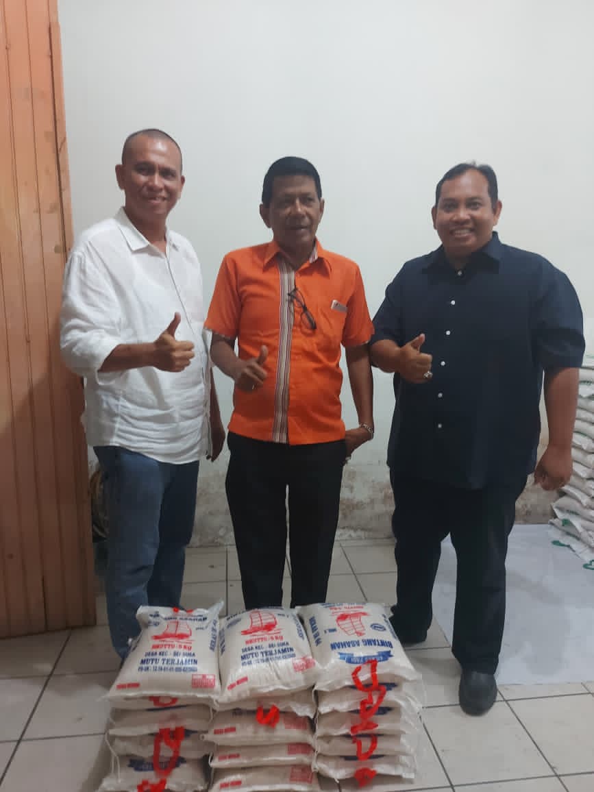 Lukman Siahaan menerima 15 karung beras untuk disalurkan kepada warga terdampak banjir di Wilayah Medan Denai.