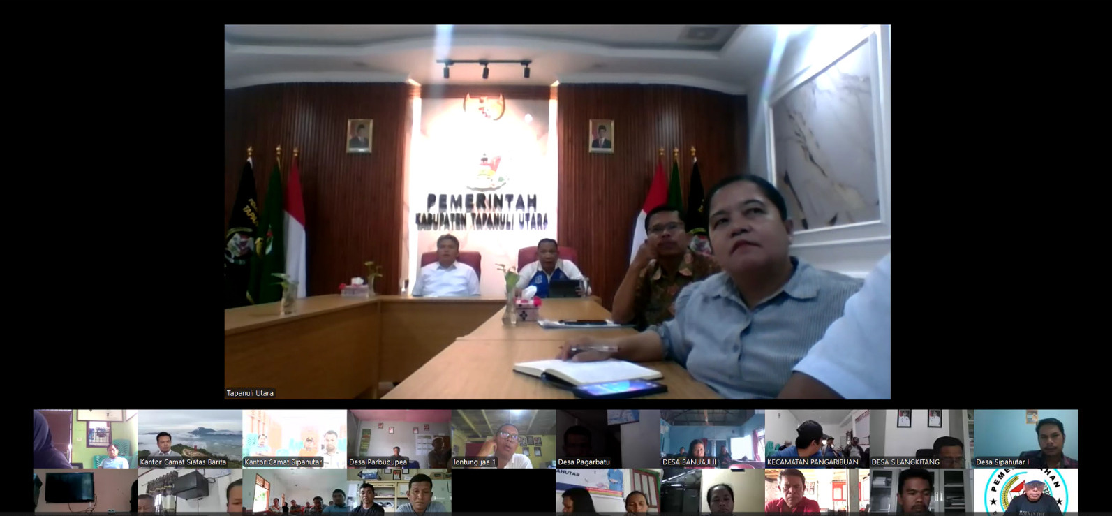 Bupati Tapanuli Utara, Dr. Jonius Taripar Parsaoran Hutabarat, S.Si., M.Si., bersama Wakil Bupati Dr. Deni Parlindungan Lumbantoruan, ST, M. Eng memimpin Rapat Koordinasi Virtual yang diikuti 214 peserta dari seluruh kecamatan dan desa se-Kabupaten Tapanuli Utara bertempat di Ruang Rapat Mini Kantor Bupati Tapanuli Utara, Tarutung (Jumat 14 November 2025).